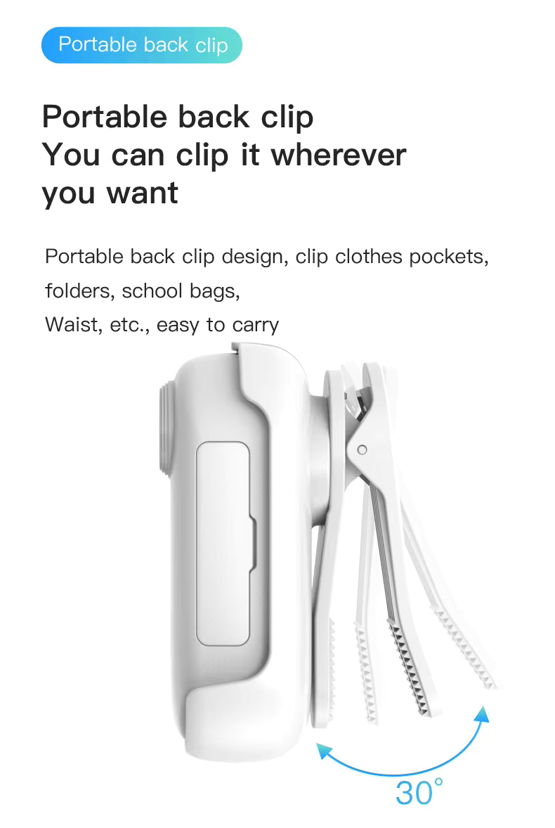- Secure with 360° rotating spring clip to collars, pockets, waist, or straps
